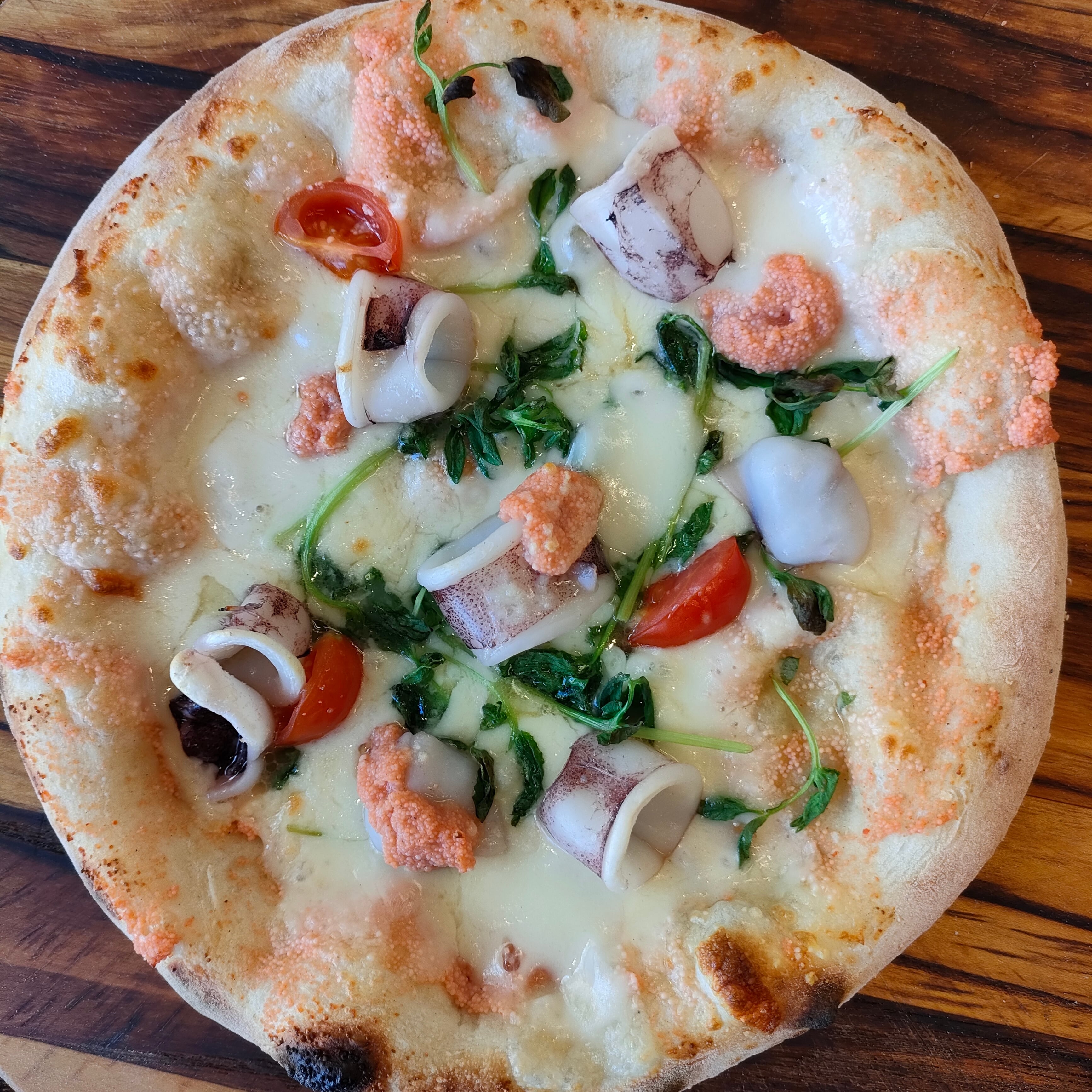 ホワイトソースをベースにコーンの甘味とハムの塩味が広がり、すべてのバランスがとれた優しい口当たりのピッツァです。